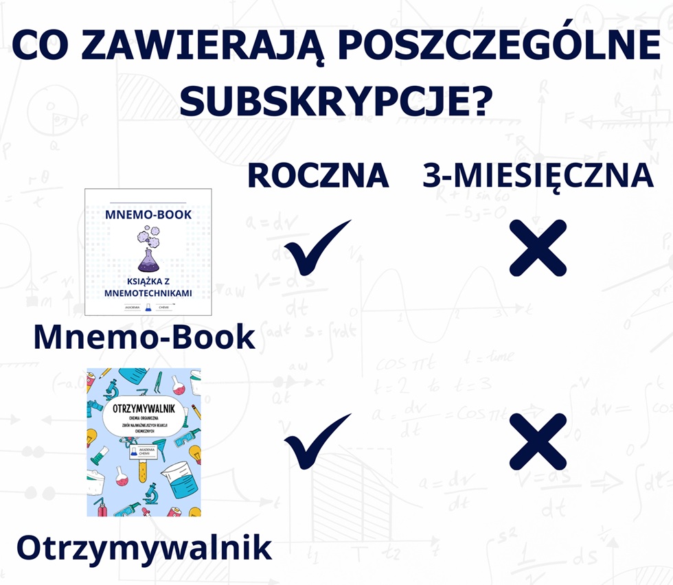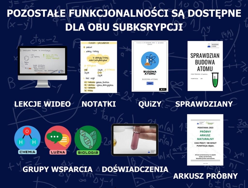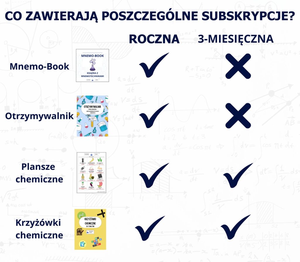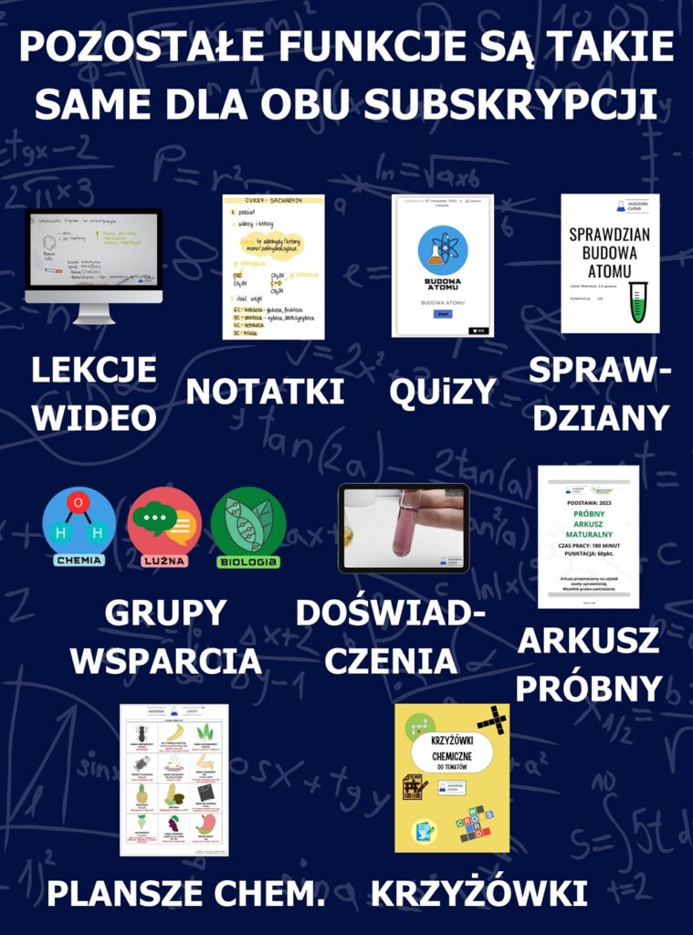W ramach subskrypcji rocznej lub 3-miesięcznej uzyskasz dostęp do unikatowych w Polsce 20 plansz chemicznych! !!