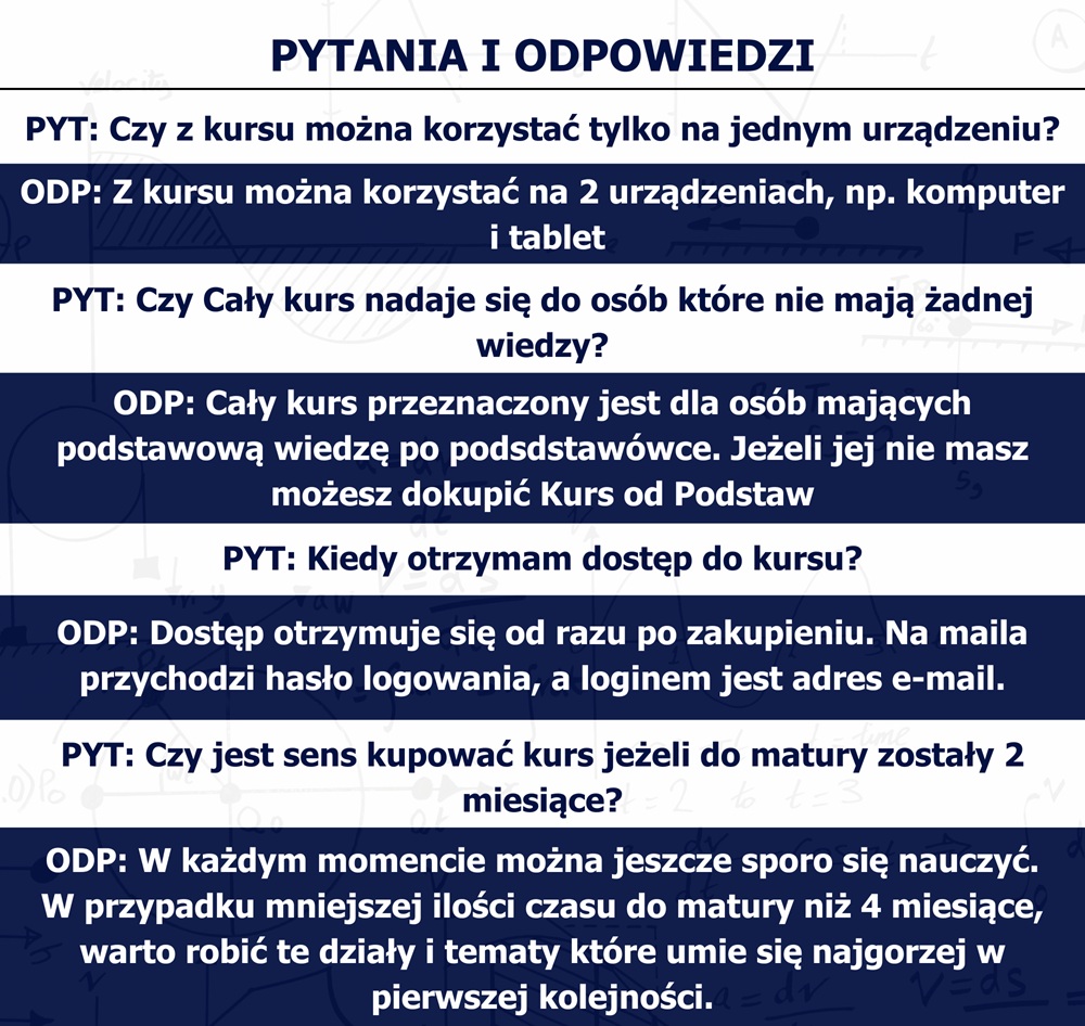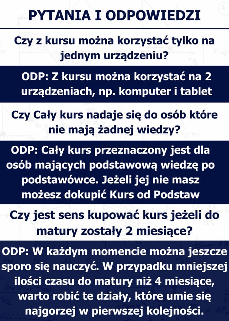 To nie jest kurs scamerski na którym przerabiacie bardzo proste zadania, by potem na maturze zaskoczyć się jej poziomem, bądź który polega na przepisywaniu rozwiązań z klucza uodpowiedzi, bez dogłębnego ich tłumaczenia.