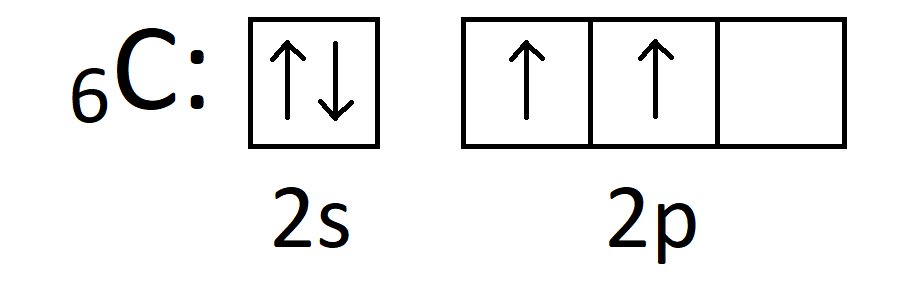 Pierwiastki mogą wytwarzać wiązania kowalencyjne (pomijając wiązania koordynacyjne) jedynie przez niesparowane elektrony. Tak więc węgiel zgodnie z powyższym zapisem mógłby wytworzyć jedynie 2 wiązania kowalencyjne. Istnieje jednak cząsteczka CH4. Jak to możliwe?